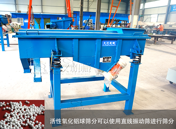 活性氧化鋁球為白色球狀多孔性顆粒,粒度均勻,表面光滑,機械強度大,吸濕性強,粒徑通常為1mm-10mm,根據(jù)活性氧化鋁球的物料特性和基本篩分環(huán)境要求參考,直線振動篩是可以用來篩分活性氧化鋁球的。