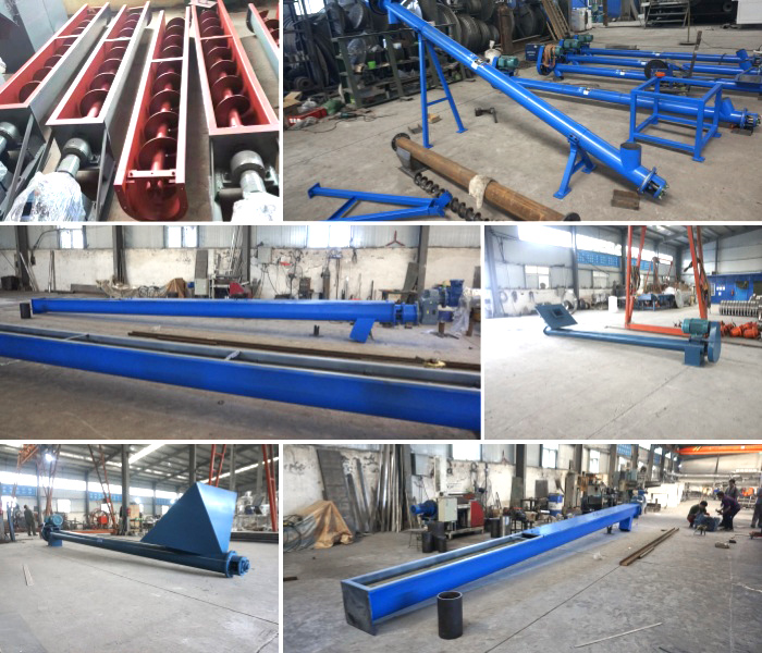 螺旋輸送機本體由頭節、中間節、尾節三種組成。一般情況下,出廠總裝時將中間節按長度長短依次排列,長的中間節靠近頭節,相同 長度的中間節則挨在一起,如果有特殊要求,則在訂貨時給出排列順序。