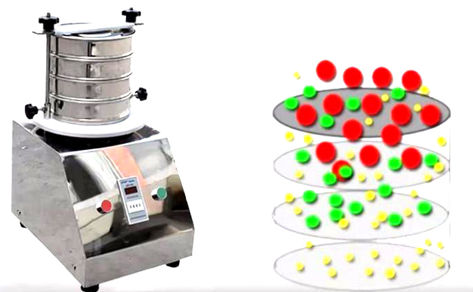 篩分過(guò)程:顆粒在振動(dòng)作用下通過(guò)篩網(wǎng),根據(jù)顆粒大小分為不同粒度級(jí)別,小顆粒通過(guò)篩孔落入下方容器,大顆粒留在篩網(wǎng)表面。
